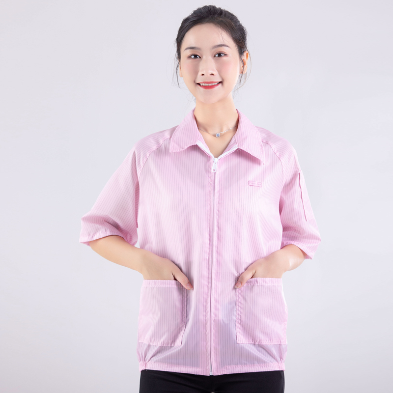 靜電衣服工作裝是指為防止服裝上的靜電積累,用防靜電織物為面料而縫制的工作服。防靜電織物是在紡織時,大致等間隔地或均勻地混入導(dǎo)電纖維或防靜電合成纖維或兩者混合交織而成的織物。導(dǎo)電纖維是指全部或部分使用金屬或有機物的導(dǎo)電材料或亞導(dǎo)電材料制成的纖維的總稱,其體積電阻率ρv~介于104~109Ω/cm之間。接照導(dǎo)電成分在纖維中的分布情況又可將導(dǎo)電纖維分為導(dǎo)電成分均一型、導(dǎo)電成分覆蓋型和導(dǎo)電成分復(fù)合型3類。絕大多數(shù)防靜電織物是采用導(dǎo)電纖維制作的,其中尤以導(dǎo)電成分復(fù)合型,即復(fù)合纖維使用最多。